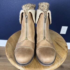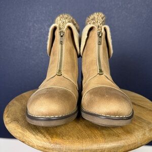 Cliffs by WHITE MOUNTAIN "Duette" Tan Ankle Boots with Knit Cuff, Size 10 WIDE