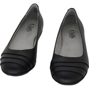 Cliffs by White Mountain Black Comfort Flats Pleated Toe Slip-On Women 7M