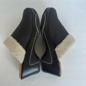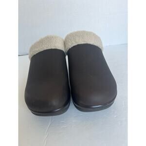 Cliffs by White Mountain Brown w/ Cream Sherpa Lined Vegan Leather Clog Mules 8