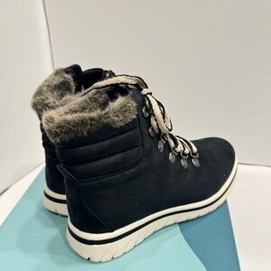 A wintery-take on a hiking boot, the Hallet bootie from Cliffs by White Mountain keeps a classic hiker style and pairs it with a modern white athletic inspired bottom. This boot has a faux fur ankle cuff to keep you warm, get you where you need to go and is nice and light