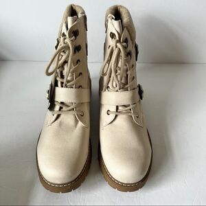 Cliffs by White Mountain Marlee Zip/Lace-Up Platform Boots Size 11. Lace-up style, inside zipper, sweater-knit cuff, buckle detail. Color is Winter White.