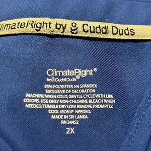 Climate Right by Cuddl Duds size 2X women’s scrub top also has 2 side pockets and is 95% Polyester and 5 % Spandex In Like New Condition