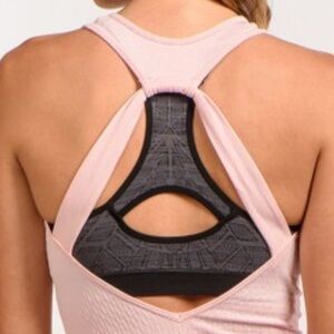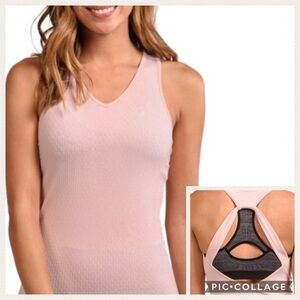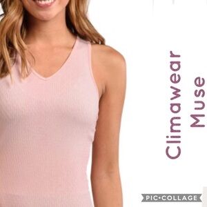 Climawear Muse seamless performance tank w/ Strappy back. sz L $40 NWT. Blush pink w/ textured fabric. Designed to act and feel like a second skin harnessing the perfect balance between compression and full flexibility. The Muse collection offers unique figure flattering designs created to dress you in confidence inspired the pursuit of your best self.