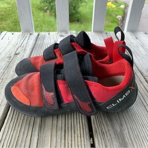 Climb X Rave Strap Climbing Shoes Men’s US 6 / Women’s US 7 EU 38 Red Black Hook & Loop Closure - Good Condition