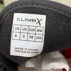 Climb X, Rave climbing shoes, climbing shoes women, climbing shoes men, red climbing shoes, hook and loop closure climbing shoes, unisex climbing shoes, EU 38, US 6 men, US 7 women, gym climbing shoes, bouldering shoes, beginner climbing gear, Climb X Rave