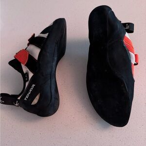 Used only 4 times all indoors. RA is a versatile climbing shoe created to achieve a perfect balance between ultimate responsiveness and maximum transfer of power from the toe when standing on tiny foot holds RA is beautifully simple and uncluttered design is not only spectacularly effective and all forms of climbing but also supremely comfortable making climbing feel easier and more intuitive. tenaya.net
