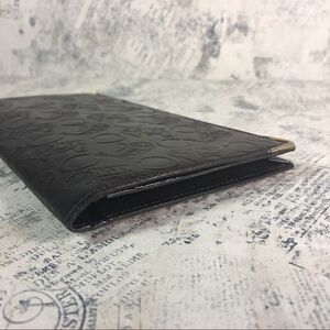 This gorgeous Celine Dark Brown Embossed Logo Patent Leather Flap Wallet is a chic way to organize your essentials like your bills, credit cards