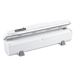 This countertop cling wrap dispenser is built for convenience and precision. It fits standard 12–18 inch wide rolls up to 1000 feet long and cuts cleanly with a sharp stainless steel blade. Great for home or commercial use.