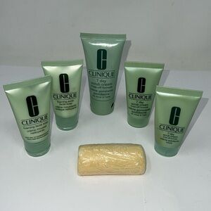 Clinique 6 Piece Set 7 Day Scrub Cream, Mild Facial Soap, Foaming Facial Soaps