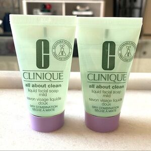 Two 1oz. Tubes. Clinique All About Clean liquid facial soap in Mild. Brand new and unopened.
