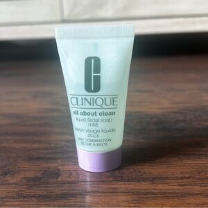 Experience gentle cleansing with Clinique's All About Clean Liquid Facial Soap. This mild formula is perfect for dry combination skin, leaving your face feeling fresh and clean.