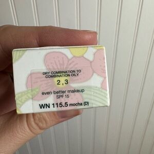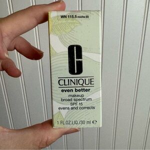 Clinique Even Better foundation with SPF 15. Designed to even and correct skin tone. Shade: Mocha.