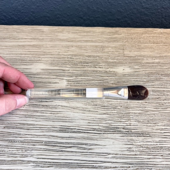 Clinique makeup brush with clear handle. Soft brown bristles. Ideal for smooth application.