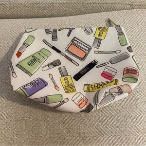 Great condition! Just a little spot that is pointed out on the bottom corner but not noticeable. Super cute cartoon makeup drawings. White background and multicolored pictures. Fun and limited edition! Plastic wrap is still on the zipper pull.