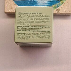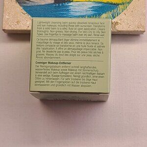 Solid makeup-removing balm transforms into a silky oil-based cleanser upon application.