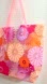 Clinique clear-vinyl tote bag with a pink, orange, lavender & peach floral print