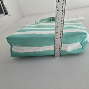 This limited edition Clinique tote, designed in collaboration with artist Drawbertson, brings a bold, playful vibe to your everyday essentials. The bag features fresh green and white brushstroke stripes on sturdy canvas, giving it a modern, artsy look.