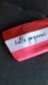 Such a sweet and positive vibe affirming travel / makeup pouch! Great for yourself or as part of a gift. Beautiful red, white, and pink stripe with black script font of “hello, gorgeous” on the front. From the Clinique x Kate Spade collaboration collection. 😍