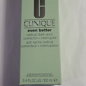 Achieve a flawless complexion with Clinique's Even Better Radical Dark Spot Corrector. This silver-toned skincare essential targets dark spots for a more even skin tone. Brand new in box! 100ml! $155 retail!
