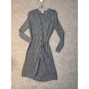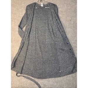 Clio Duster Cardigan Women Small Gray Short V-Neck Silk Button Up Long Sleeve