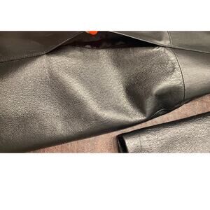 Clio II Black Leather Long Jacket Mid-Length Coat 90s Style Medium