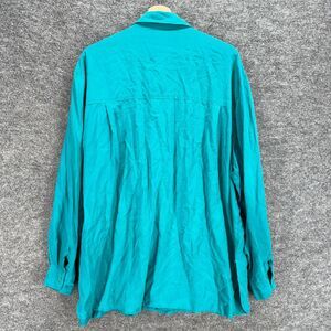 Clio II Shirt Women 3X Plus Blue Button Up Silk Long Sleeve Collared Pockets