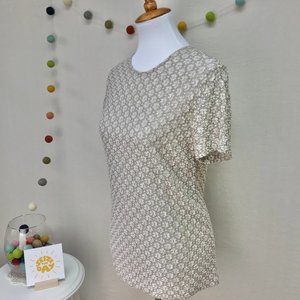 Clio Neutral Textured Career Top in Tan/Sand/Beige Color - Petite Medium