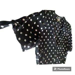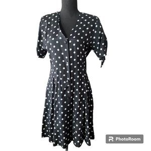 Clio Petites Vintage 80s Women's button down short sleeve black/ white Polka dot Dress
