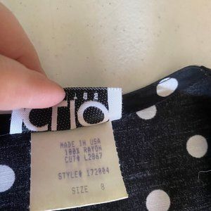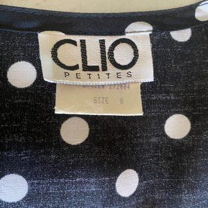Clio Petites Vintage 80s Women's button down black/ white Polka Dot Dress sz 8P