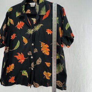 Clio Petites Vintage Shirt Sz PL Short Sleeve Button Up Fall Leaf Tropical Black