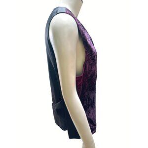 Clio Velvet Satin Sleeveless Vest Button Front Black Purple Size M