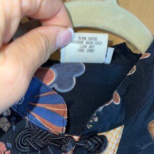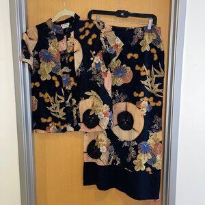 Clio Vintage 90s Womens Skirt Set Size Small Black Asian Floral Pure Rayon