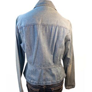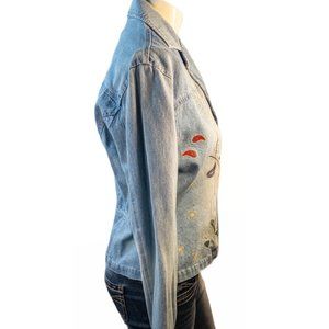 Clio Womens Size 12 Denim Jacket Vintage Floral Embroidered Light Wash Retro
