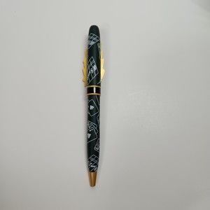 Pen Barrel is dark green with white line graphics