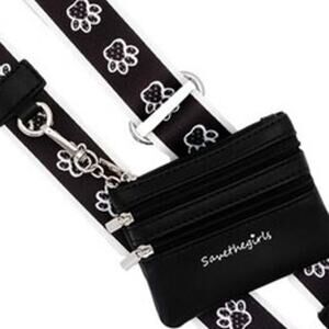 Clip & Go Phone Purse Crossbody Strap Zippered Pouch Black White Paw Prints