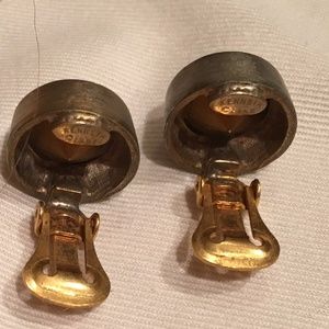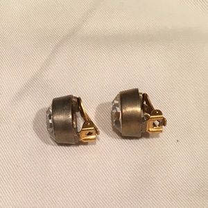 Kenneth J Lane Beautiful Clip On Earrings with huge CZ's of 0.75" diameter in Gold colored metal. Timeless, statement piece of high end costume jewelry. Earrings have a very rich look. I wore them once or twice. You can wear them yourself or give it as a gift. They look like new.