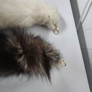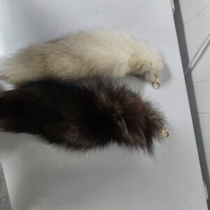 Clip On Tail Super Soft Real Feel White Brown 12 inches Theater Goth Cosplay