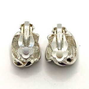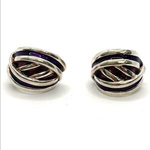 Clip Ons Clips Earrings Silver Tone Purple Maroon Enamel