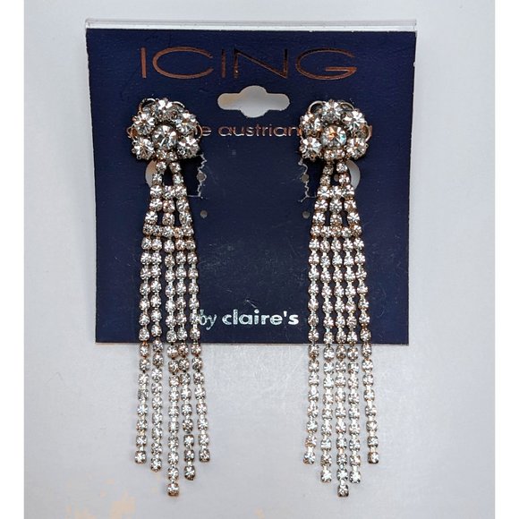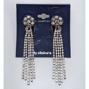 A pair of Icing genuine Austrian crystal waterfall drop earrings. 3 inches long. Clip, for those without pierced ears. Vintage, from the 1990s!