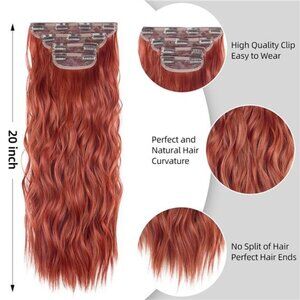 Clip in Synthetic Hair Extensions 4PCS 20 Inches Copper Red