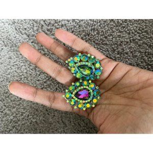 Clip on Aurora stud big rainbow earring teardrop rainbow vintage rhinestone