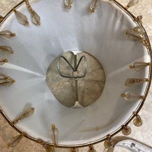 Lovely bronze silk lampshade adorned with crystals. One small smudge on the inside.