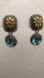 Clip on Light Blue Stone Earrings Drop Jewel Gold Flower Pewter Silver
