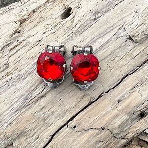 Clip on earrings with siam red cushion shape Swarovski crystal handcrafted