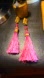 Clip on / non pierced Statement bohemian style pink silk tassels fabric earrings.
