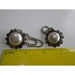 Clip-On Earrings chain dangles Faux Pearl and Silver