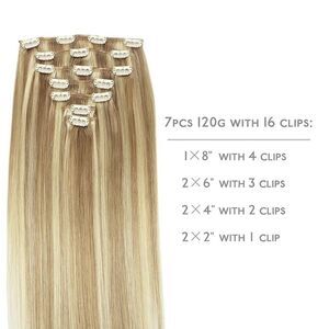 Extensions, 20 Inch 120g 7pcs Light Blonde Highlighted Golden