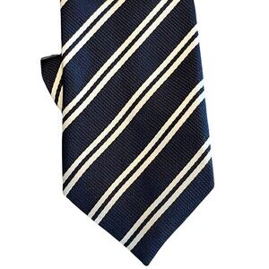 Place, Navy Blue and White striped Polyester-Strap around neck to snap-not clip on
