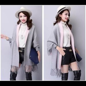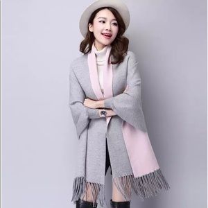 Double-sided mid-length wool shawl with sleeves for women in autumn and winter thick tassel scarf dual-use cloak jacket to keep warm