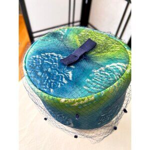Cloche 1960s Hat Blue Green Threads 3 Depth 21 to 22 " Circumference